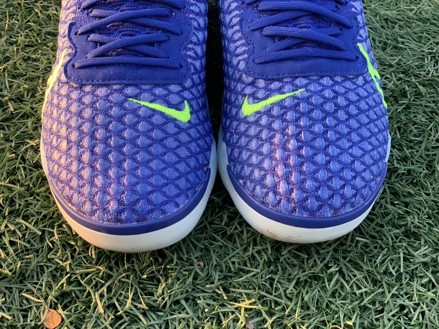 플라이니트 어퍼에 안쪽에 인조가죽으로 덧대여져 있다 착용감이 진짜 좋다 처음신어도 많이 신었던 신발처럼 느껴진다 얇은 풀라이니트의 터치감도 좋다 하지만 플라이니트풋살화의 단점중에 하나인 킥감이 시원시원하지는 않다